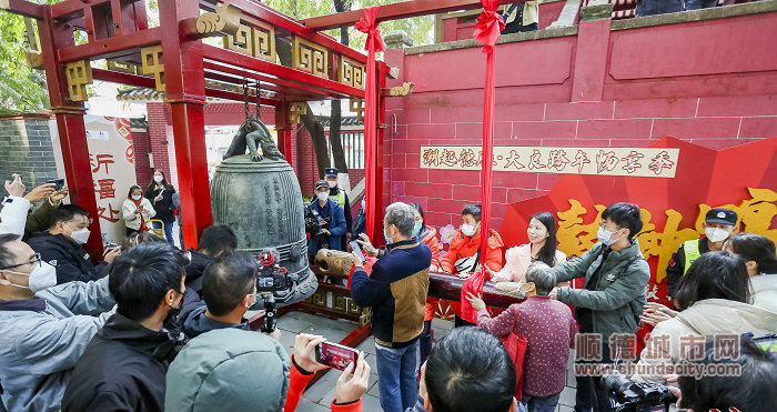 当天的敲钟仪式由顺德区新时代文明实践中心、顺德区委宣传部指导,大良街道新时代文明实践所、大良街道办事处共同主办。