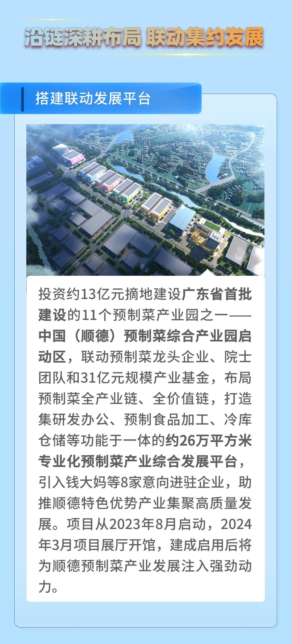 2023年,顺控集团下属顺控产投公司聚焦布局现代农业及食品产业链等核心业务,依托顺德美食文化底蕴、禀赋资源优势和凤城水乡风情,联动优质企业和广泛社会资源,重点推动顺德美食、预制菜产业、文旅产业等集聚联动和融合创新发展,并搭建内外贸综合服务平台,持续挖掘优质项目、提升企业质效,培育国资国企新业态、新优势,拓展企业中长期成长发展空间。