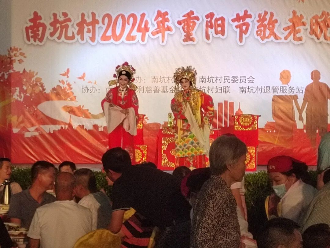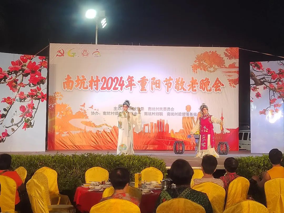 当晚设宴120席,整个南坑村60岁以上的长者齐聚村委会前的广场上,村委会更是特地邀请粤声扬粤剧团表演助兴。精彩的粤剧表演、欢乐的氛围让老人们在欢声笑语中品味传统文化,充分感受到了来自社会各界的关爱和支持。