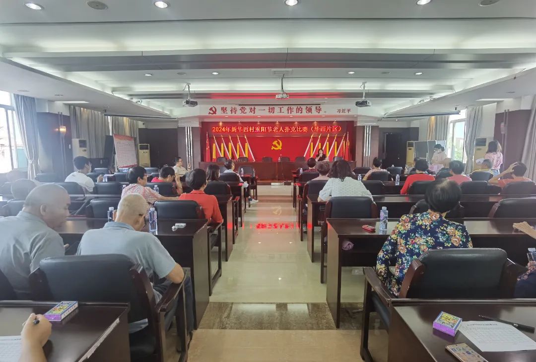 10月10日上午,新华西村党委、新华西村委会、新华西村新文明实践站组织辖区内老年人、志愿者共70多人开展“我们的节日·精神的家园·重阳节——新华西村扑克比赛”活动,为传统敬老节日增添了新的活力与色彩。