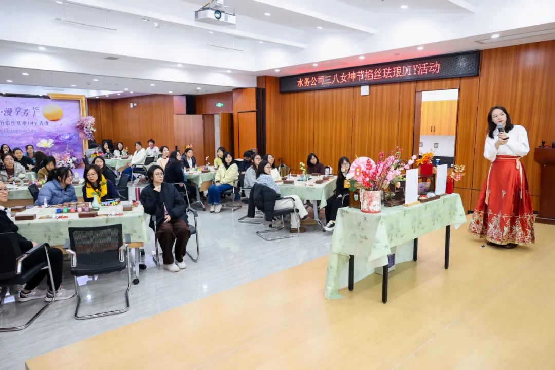 水务公司董事长何建东表示,近年来公司业绩增长的背后,离不开女同胞们的努力付出,是新时代女性"柔肩担重任"的最佳印证。最后,他衷心祝愿全体女职工的人生如眼前作品般流光溢彩,在事业与生活的舞台上,永远保持自信优雅的姿态!