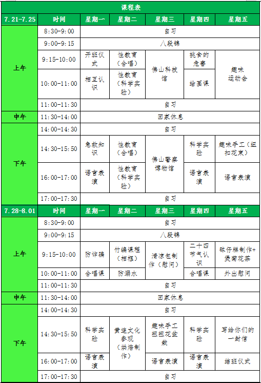 活动时间:2025年7月21日-8月1日,共10天(周一至周五)如有调整另行通知