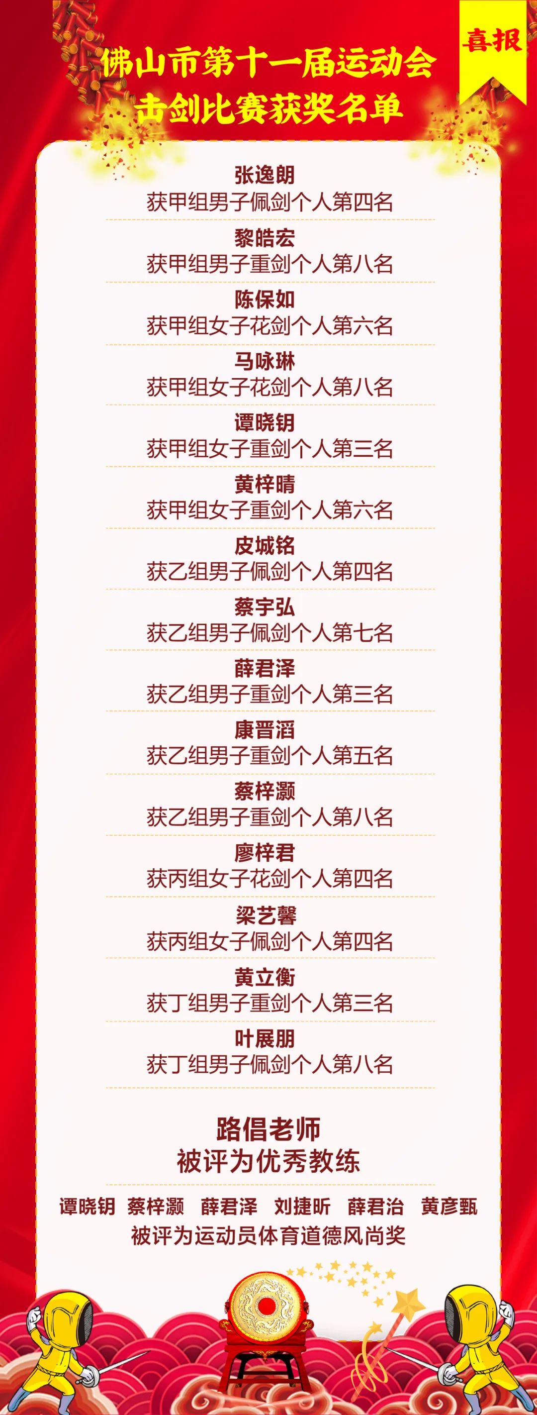 祝贺所有获奖的击剑小将