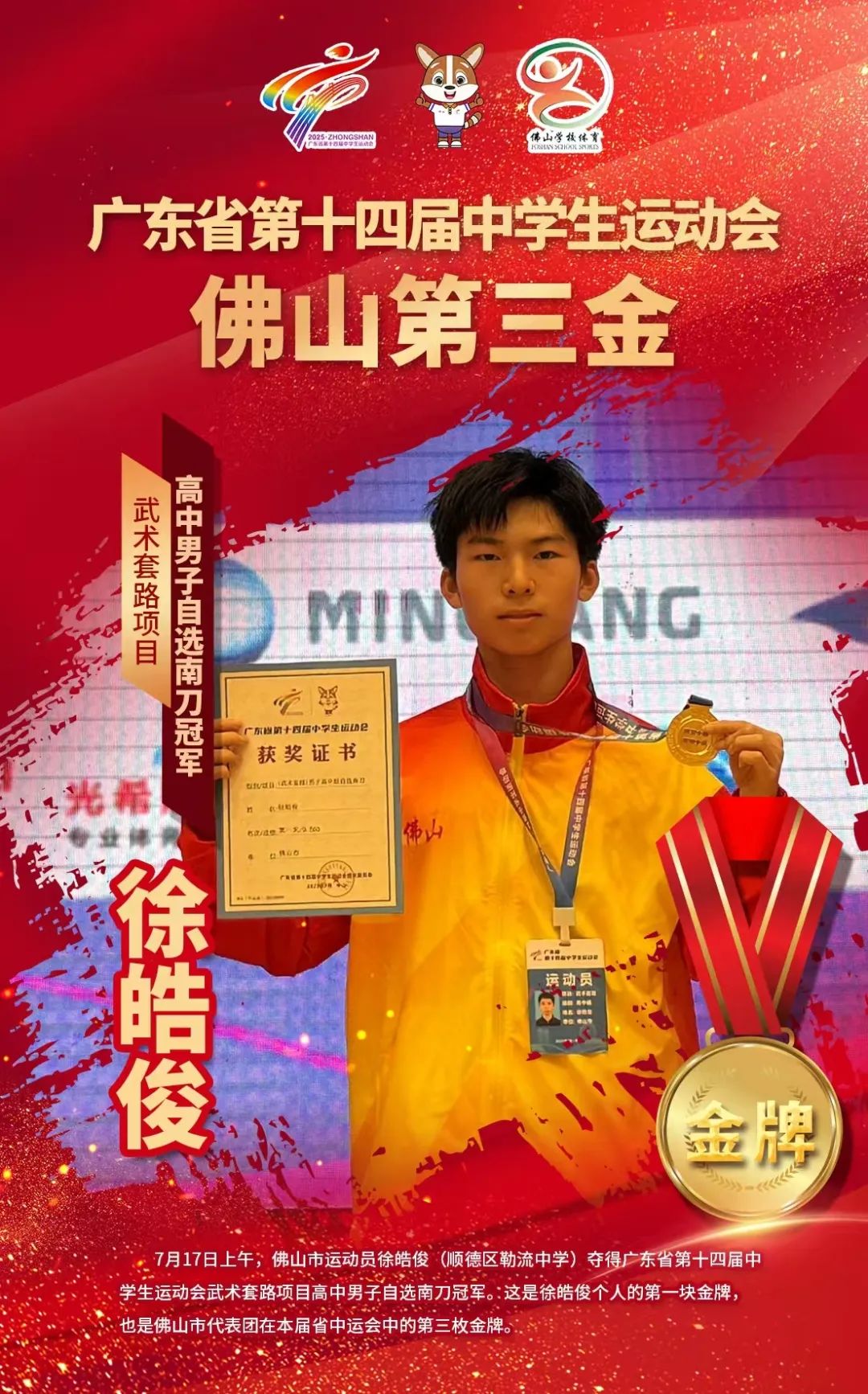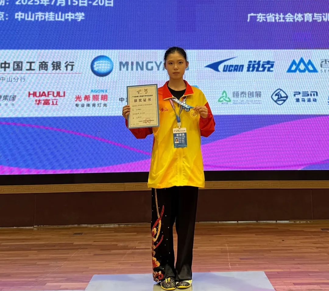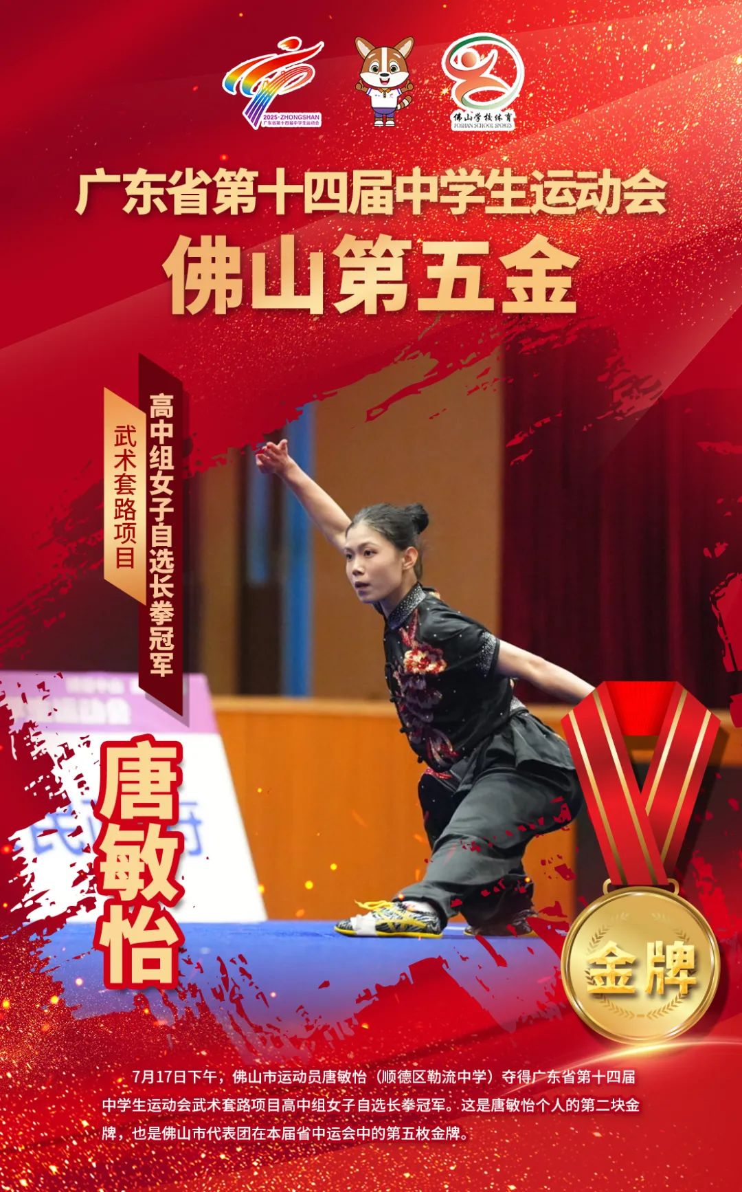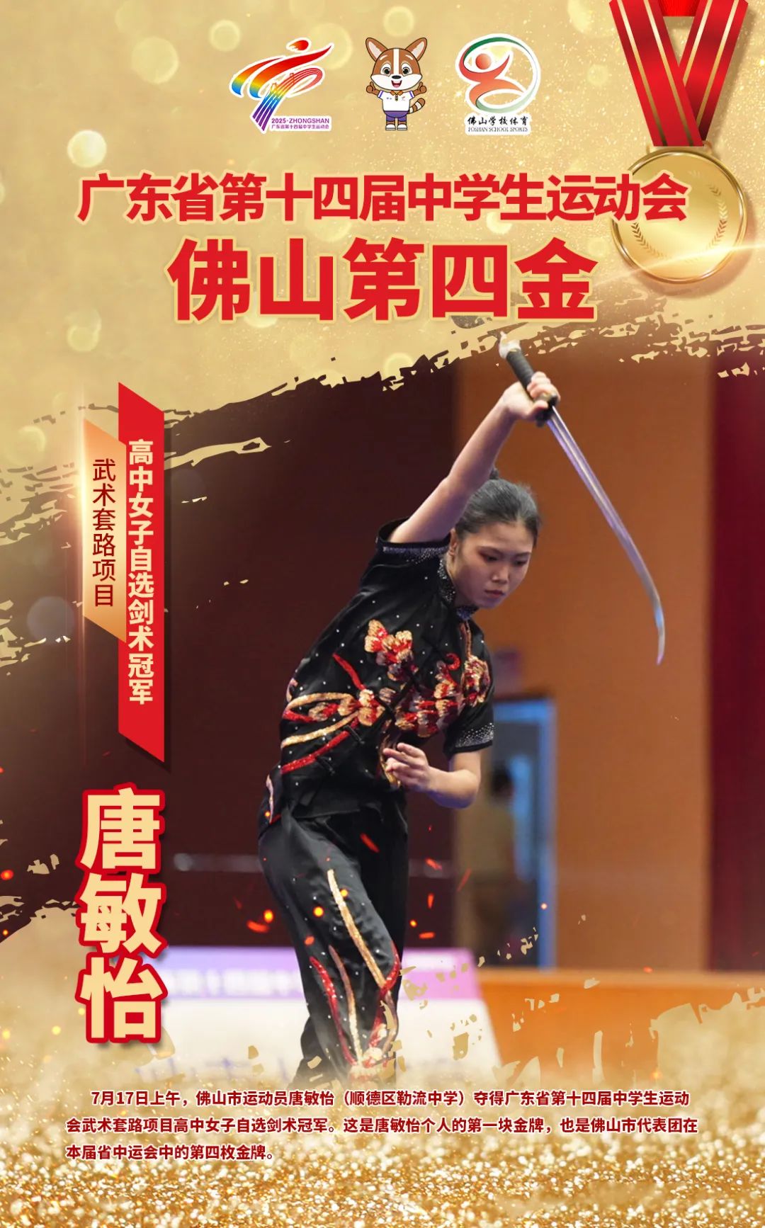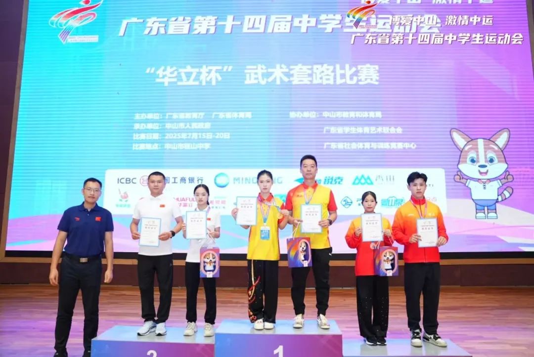 在佛山高中组代表团中,勒流中学的两名学子唐敏怡和徐皓俊成为夺金主力,为团队贡献了“三金一银”的耀眼成绩。赛场上,他们凭借扎实的功底、稳定的发挥和昂扬的斗志,在激烈竞争中脱颖而出,充分展现了中华武术的魅力与青少年运动员的风采。