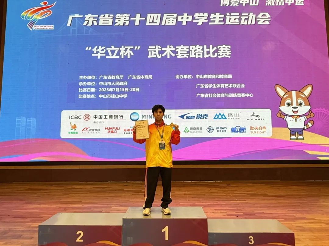 近日,广东省第十四届中学生运动会武术项目在中山市激烈开赛。佛山代表队凭借强劲实力脱颖而出,以9金6银8铜、总分382分的优异战绩,强势斩获团体总分第一名。其中,佛山高中组表现亮眼,夺得4金5银3铜,以200分的总分位列高中组榜首。