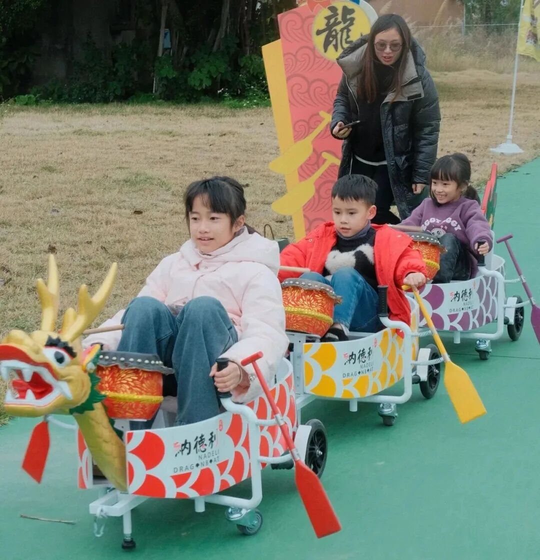 活动简介:划划龙是一个欢乐的龙舟竞速游戏。适合3-8岁儿童,通过两手摇动“船桨”便可控制方向前进,踩在脚踏板上还能敲响鼓点,让孩子们坐在龙舟上就能模拟真实的划龙舟场景。