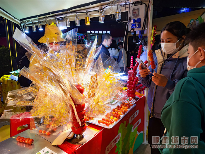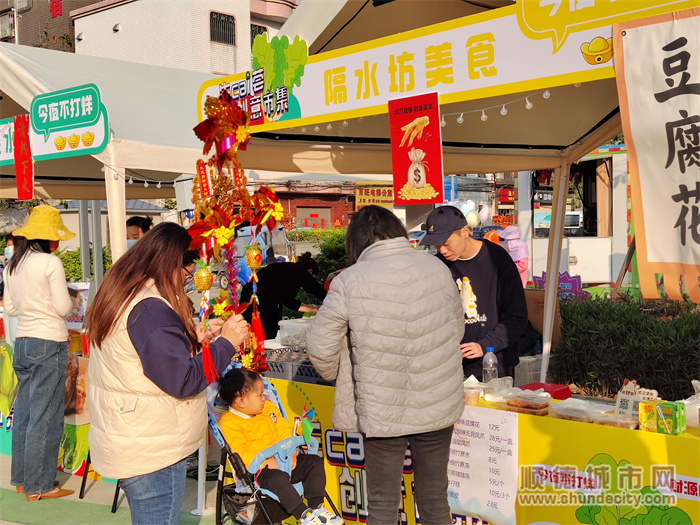 市集设有近30个摊位,分为“容桂潮趣”和“民俗潮品”两大类别摊位,既有民俗、非遗文化、老字号品牌展示,也有特色文创产品展销,当然还有“深夜食堂”挑动味蕾。