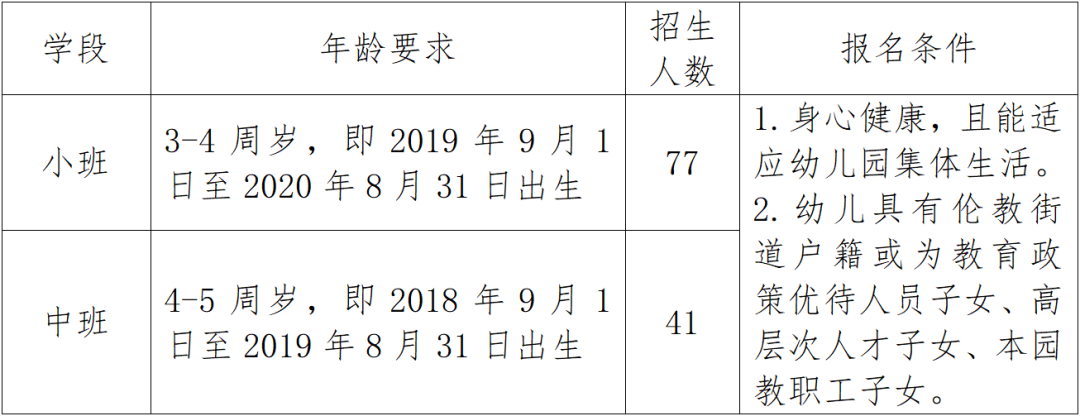 3. 符合招生年龄的本园教职工子女。