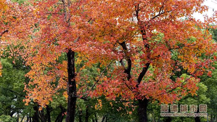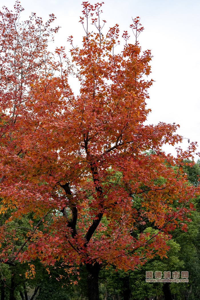 经历过刺骨的寒意,目前顺峰山公园那一棵棵枫叶已深红金黄,绚丽多姿,正是赏枫好时节。