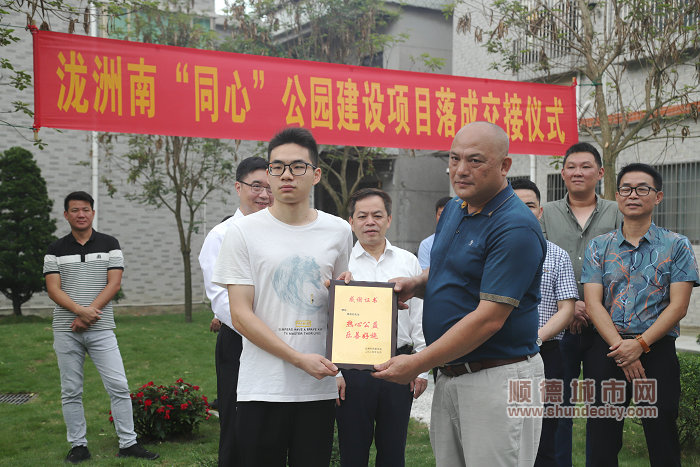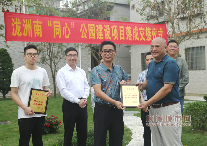 5月6日上午,位于顺德陈村镇仙涌村泷洲路南八巷,泷洲南“同心”公园建设项目落成交接仪式在这里举行,仙涌村负责人向热心村民、顺德区台商协会园艺花卉专业委员会代表赠送感谢证书,这是党群同心合力、两岸同心同德,携手助力“百千万工程”、建设绿美广东的又一鲜活案例。
