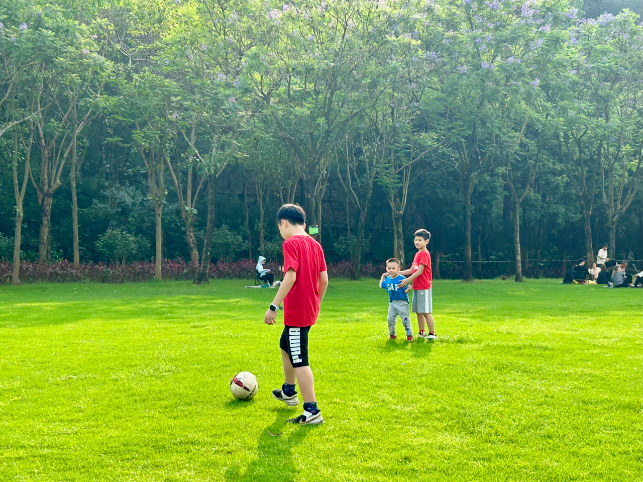 孩子在附近嬉戏奔跑、撒欢