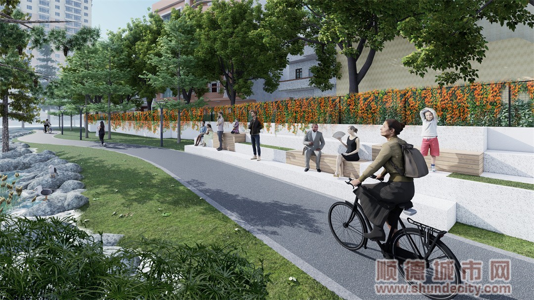 据介绍,本次的美岸项目以人为本,用心梳理原本杂乱无章的河岸环境,利用腾出的岸线空间建设滨河步道及自行车道、观景飘台,沿途设置景观休憩节点,修复河岸绿化植被,提升河岸绿化景观,为周边的居民群众提供集休闲、娱乐、运动于一体的生态滨水空间。项目建成后,凫洲河一河两岸靓丽风光全线基本成型,为均安打造特色的水上文体活动及旅游线路打下了坚实基础。
