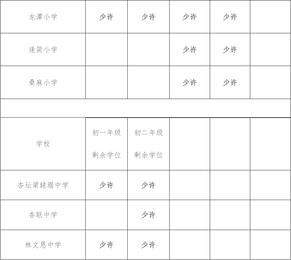杏坛镇各中小学学位情况表