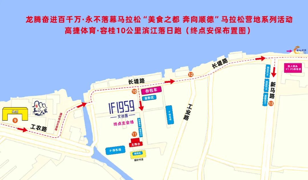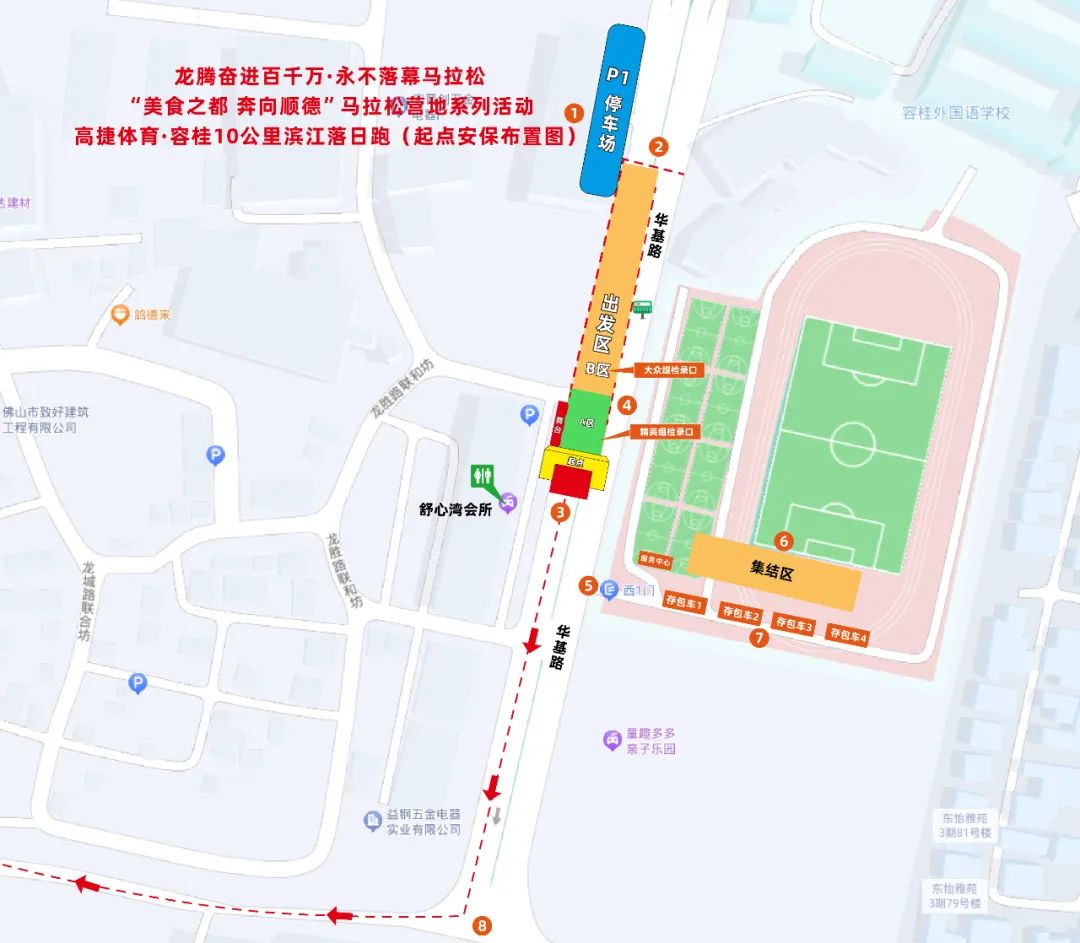 比赛路线:容桂华基路(容桂外国语学校)(起点) → 西堤二路 → 西堤三路 → 西堤四路 → 容桂工农路(丰尔人家路段)(终点)