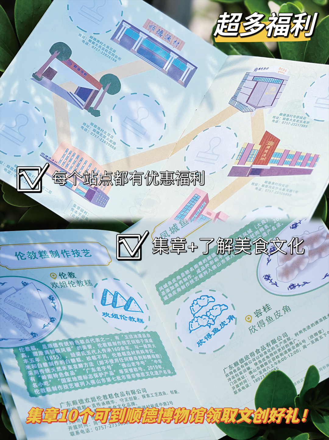 2、凭本手册集章10个(含顺德博物馆章)可到顺德区博物馆东门咨询台领取文创礼品一份,数量有限,先到先得,送完即止。