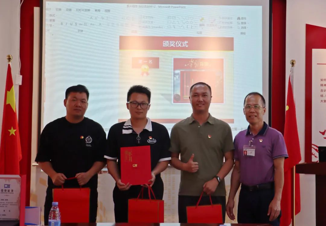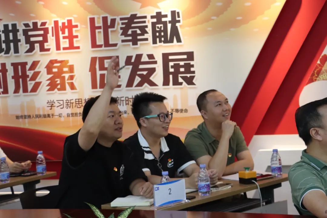 广东富信科技股份有限公司党支部围绕《顺德百年党史简读本》《顺德党史人物故事》《顺德区革命遗址通览》3册学习资料开展顺德党史知识游戏。游戏通过抽取组号,组成三支参赛队伍,同台竞技,献上了一场精彩纷呈的知识盛宴。活动中,选手们拼手速、拼脑力,各队比分你追我赶,牵动着每位选手的心弦,现场气氛紧张热烈。