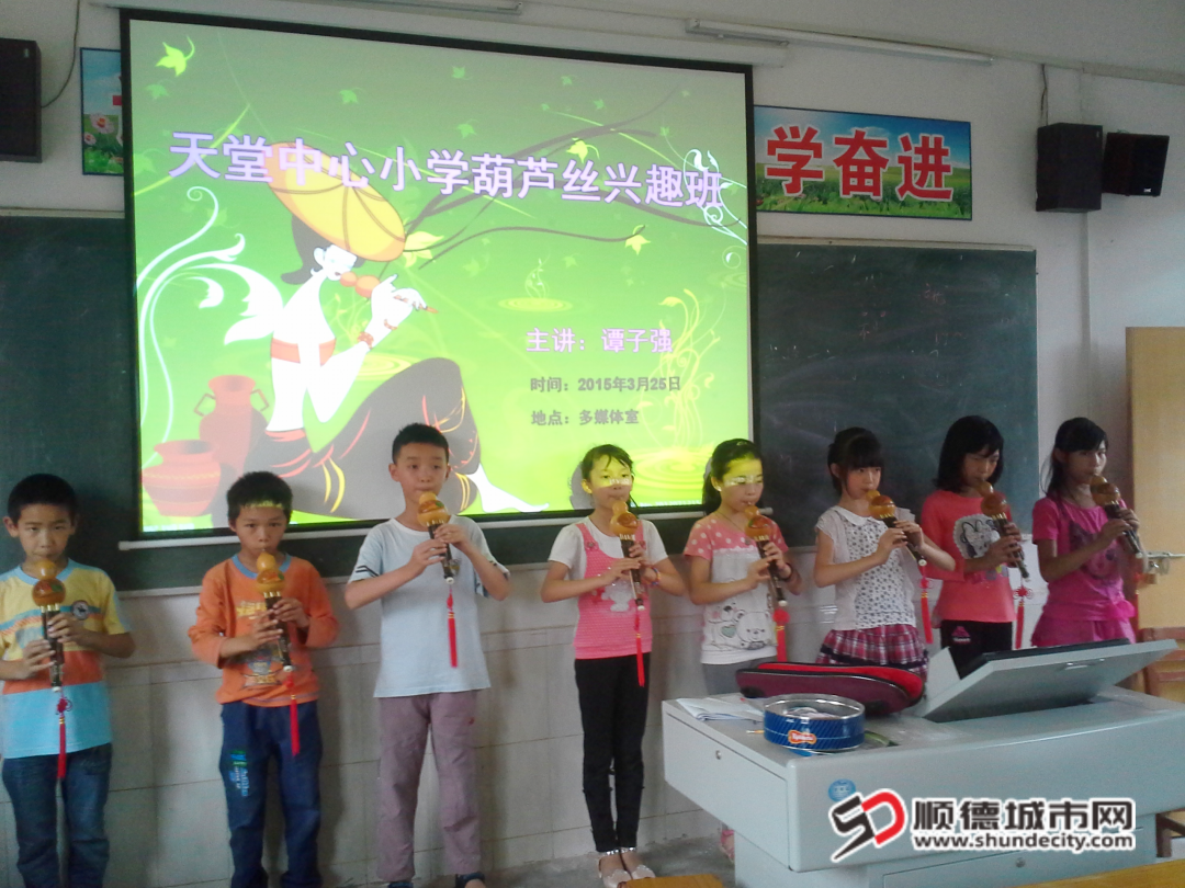 在天堂中心小学开展葫芦丝兴趣班。
