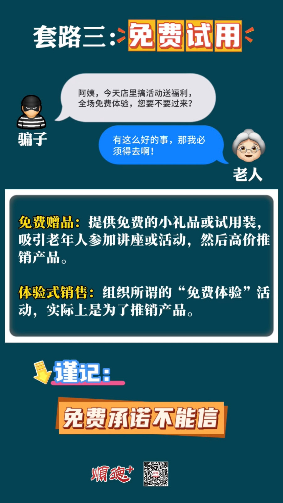 近期,顺德区民警在工作中发现部分老年人体验馆以免费体验保健产品为幌子,诱导老年人高价购买毫无实际功效的所谓“神奇保健品”,给众多老年人及家庭造成了财产损失和精神伤害。