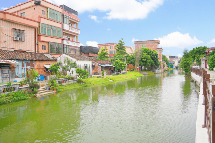 沿鸡肠窖河往南走,迎面而来的便是陈村河及厘涌景观工程,全长约1.2公里,面积约为10000平方米。