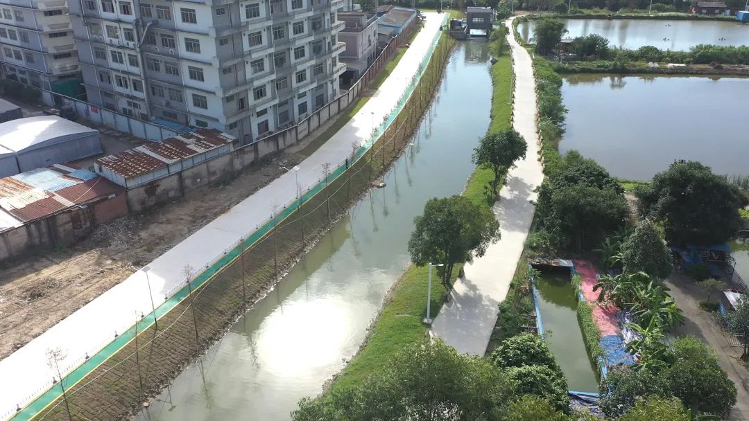 为助力旺岗村“百千万工程”,提升茶园涌一河两岸环境。今年9月,旺岗村与企业结对共建,投入约100万元,对黄涌路涌边路段进行改造,包括新建6米宽道路和1.5米宽绿道、添置护栏和2米绿化带、种植水杉、加固堤岸、完善排水系统,工程仅历时2个月,就实现了通车。原本的“断头路”成为了连通居民区和工业区的主干道,优化了周边环境,让群众出行更便利安全。