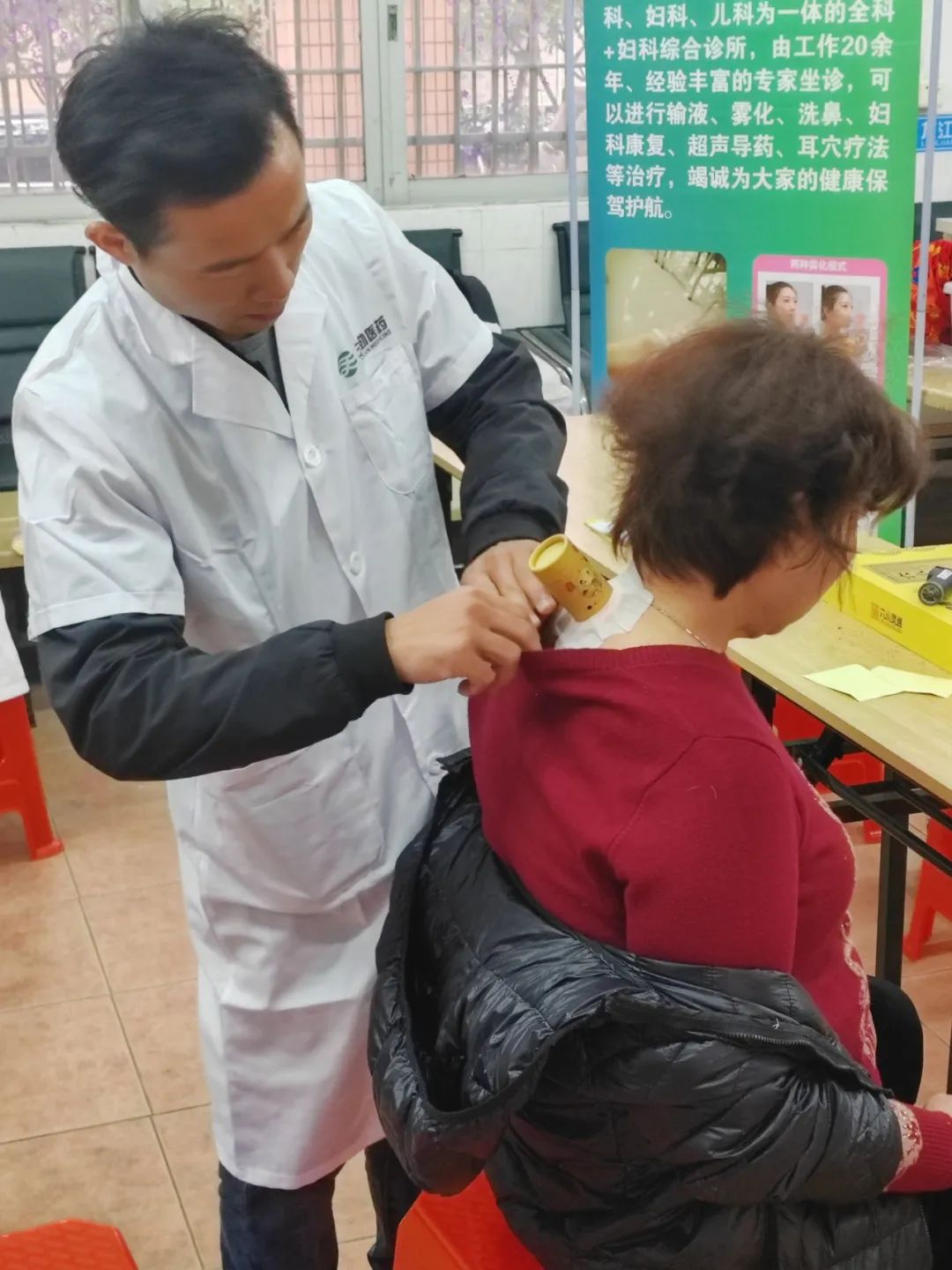 活动现场为居民提供了艾灸体验、测血压、眼科和口腔检查、免费理发等便民服务摊位,拉近了村民距离,又设置了怡乐创作、怡乐游戏等趣味摊位丰富了村民体验。