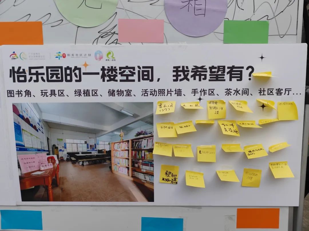 值得一提的是,本次活动还通过可视化的方式让村民更直观地了解到怡乐园的空间规划设置和活动类别,让村民可通过写便签、贴贴纸、填写调查问卷以及和志愿者访谈等方式,提出自己的意见和建议。