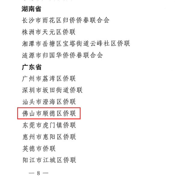 截止目前,顺德实现全区镇街有侨联、村居有侨干、各处有阵地、经费有保障、活动丰富的为侨服务全体系,打造“五有侨联”建设走在全省前列。