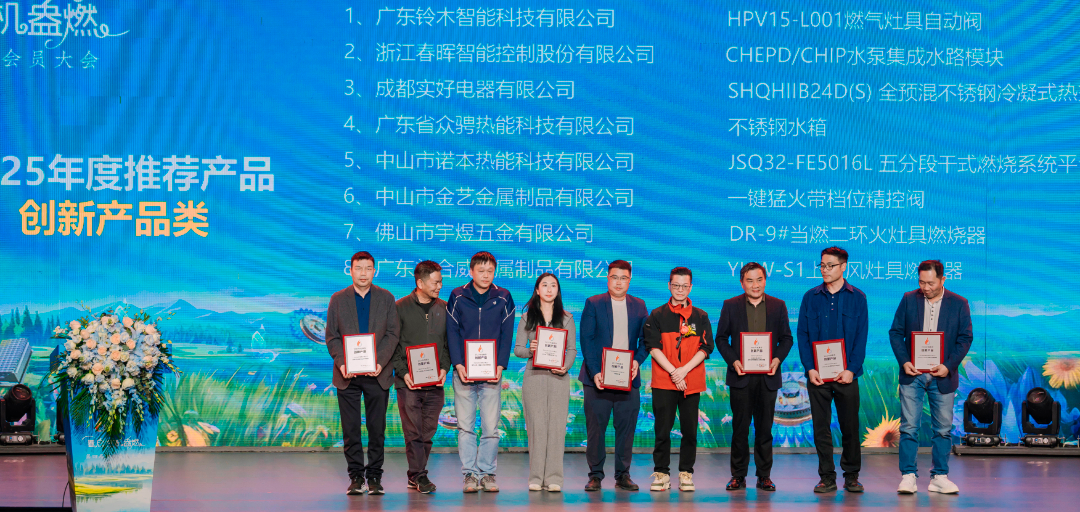 大会还发布了“商会2025年度推荐产品”评价结果。经商会专家组严格评定,“HPV15-L001 燃气灶具自动阀”等8件产品评“创新产品”,“H435 房车恒温热水器控制器”等4件产品评定“优质产品”,共12件产品入选“商会2025年度推荐产品。同时,大会还发布T/SGACC 1004-2024《燃气用具产品质量追溯规范》T/SGACC 1005-2024《燃气具行业质量追溯与服务平台功能建设和管理规范》两项团体标准。