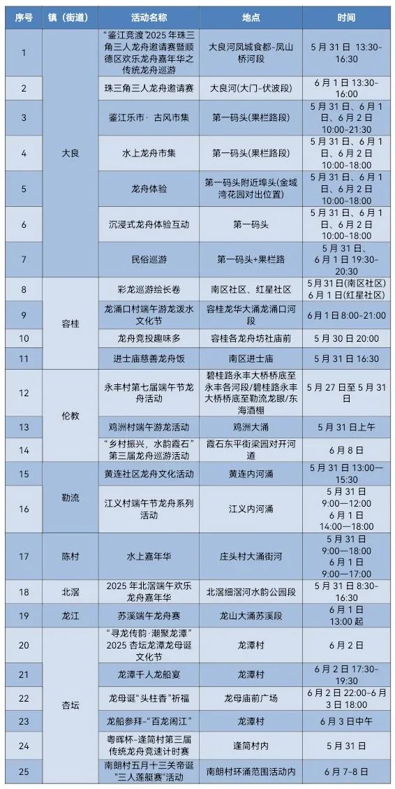 农历五月的顺德,涌涌可见龙舟穿梭,村村可闻锣鼓喧天,一场点睛祈福的活动开启了顺德龙舟文化的宝盒。又是一年端午时节,顺德各镇将陆续上演集舌尖飨宴、潮玩市集、水上狂欢为一体的龙舟文化活动。