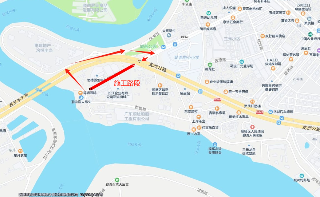西安亭大桥十字路口往西丫片区方向的车辆,可通过龙洲路—西堤路进行绕行;