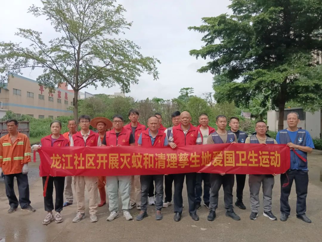 为进一步加强登革热防控工作,有效遏制蚊虫孳生与疾病传播风险,守护居民群众的身体健康,6月19日上午,龙江社区党委联合驻村工作组,组织社区工作人员、党员志愿者及消杀队,开展以灭蚊和清理孳生地为重点的爱国卫生专项行动。