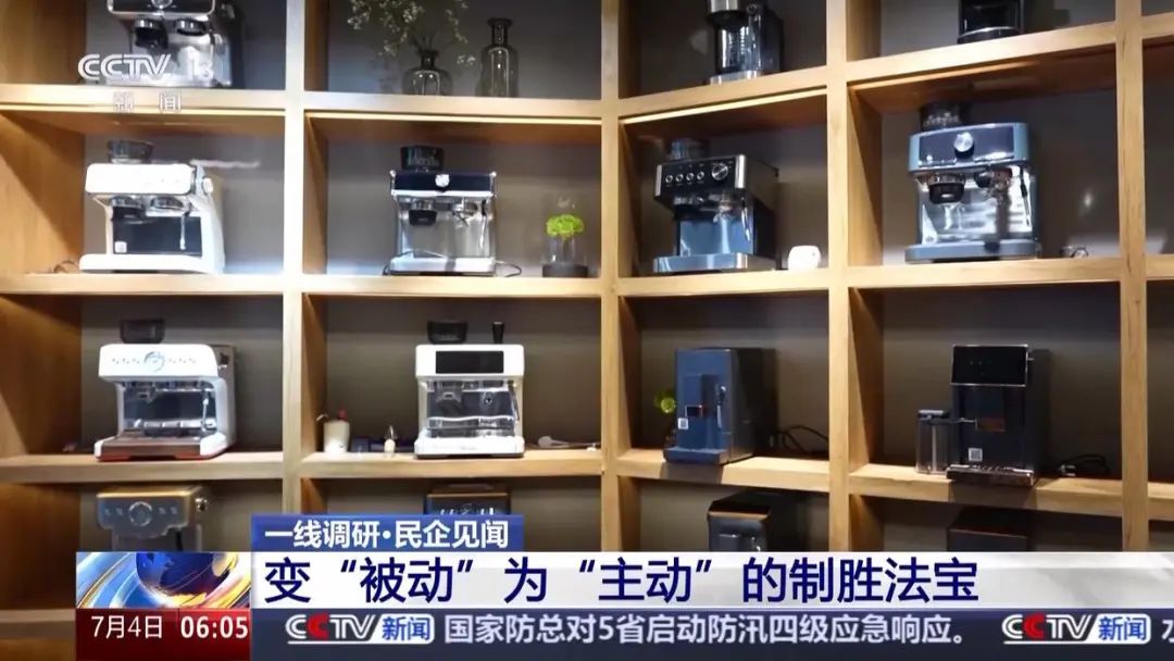 研发设计提速,生产也要跟得上,企业7秒钟可以生产一台咖啡机,从上料到下线,整个600多条生产线,承接的20多个国家的订单在同时生产。