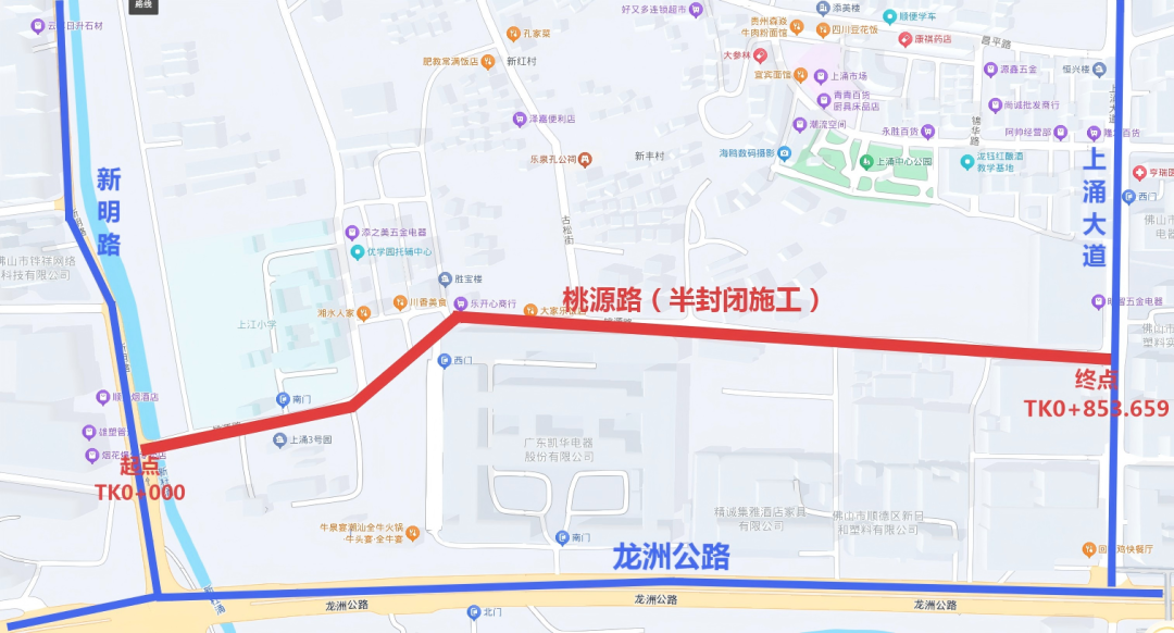 勒流街道桃源路(上涌~新明)计划于2025年7月8日至2025年8月18日进行路面、电力、通信及路灯施工,期间对该路段进行半封闭施工。