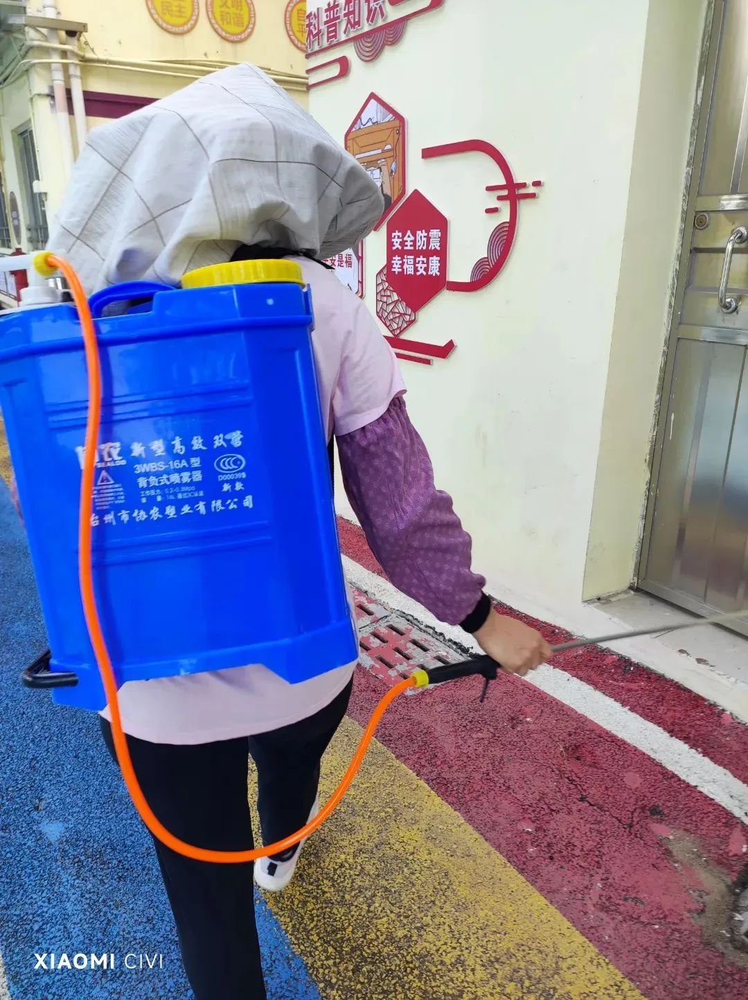 值班人员、后勤人员积极响应号召,组建“志愿清消队”,以高度的社会责任感和对学生的爱护之心,投身校园积水清理、杂物清除和辅助灭蚊工作,为保障校园环境卫生安全贡献了重要力量。