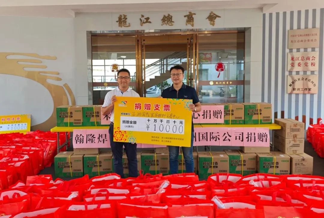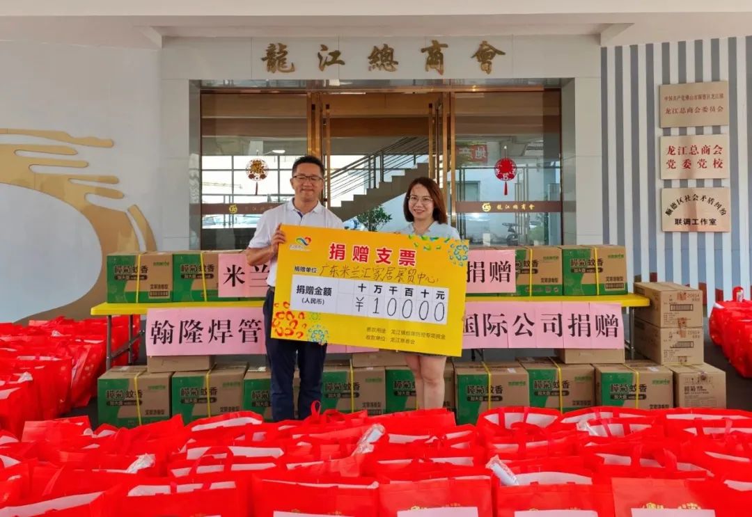 7月25日上午,龙江总商会常务副会长单位佛山市亚洲国际家具材料交易中心有限公司、广东米兰汇家居展贸中心向全镇在册低保、临界、三无、五保家庭捐赠蚊媒防疫礼包。