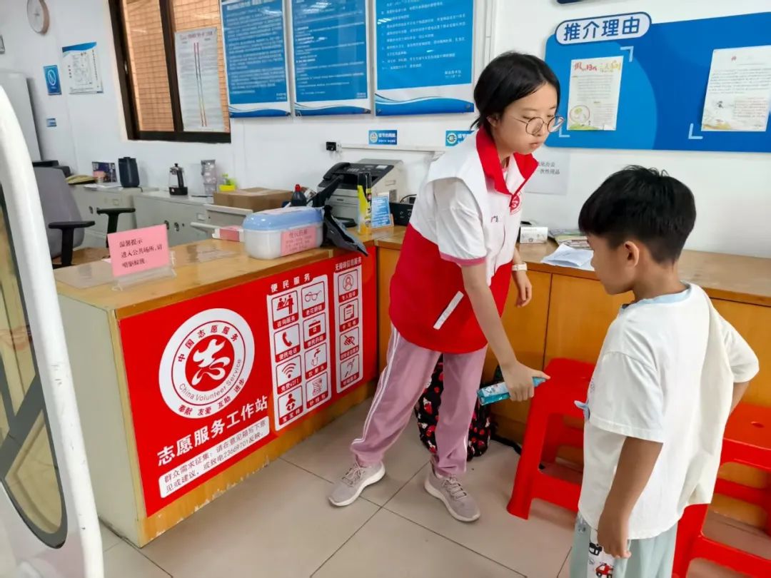 前来办事的伍女士一进门就拿起瓶子,对着自己的手臂、脚踝均匀喷洒了几下。“天热蚊虫多,听说最近还有基孔肯雅热疫情,喷点这个,自己安心,也是对别人负责,社区服务也贴心。”