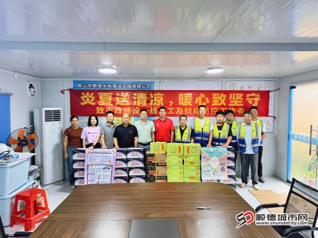 8月4日,顺德区住房城乡建设和水务局水利建设股股长唐宇伦、顺德区市政建设工程协会会长黄伟华一行,顶风冒雨前往佛山市顺德水电建设工程有限公司承建的“佛山市顺德区龙江镇西安亭闸站工程”、广东雄辉市政公用工程有限公司承建的“佛山市顺德区北滘镇西海北围工业区横二路工程”等项目现场,开展“送清凉”暨蚊患防控慰问。60箱矿泉水、360盒防蚊物资及40箱清凉饮料被及时送达,为奋战在工地的建设者们送去清凉与防护。