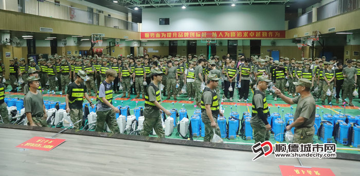“5:30集合,6点准时出发!”8月5日清晨,天色微亮,顺德区消杀突击队的集结号已在顺德区蚊媒传染病疫情防控指挥部办公室消杀组集结地顺峰中学响起。200名身着长袖军装的队员,肩扛消杀设备,在体育馆整齐列队,即将奔赴乐从、北滘、陈村的重点片区开展消杀作业。
