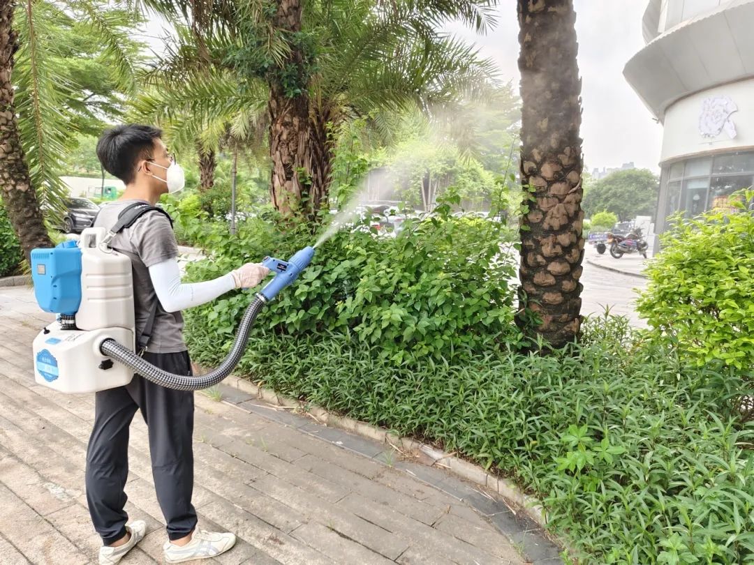 清晨7:00,天空还灰蒙蒙亮,村庄初醒。消杀指导员们跟随背负沉重喷雾器械的消杀公司成员,一同化身“迷雾行者”,穿行在窄巷院落。超低容量喷雾机轰鸣,药雾瞬间弥漫成微米级的云墙(超低容量喷洒形成细小雾滴,长时间悬浮空中,高效杀灭成蚊)。此时,正是伊蚊最猖狂的“早餐时间”,大家的药剂就是最迅猛的反击。