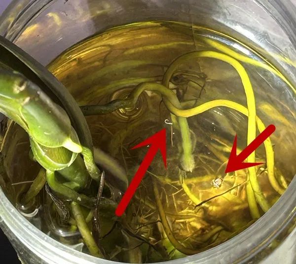 冲洗后的水培海芋容器内依旧可见孑孓游动