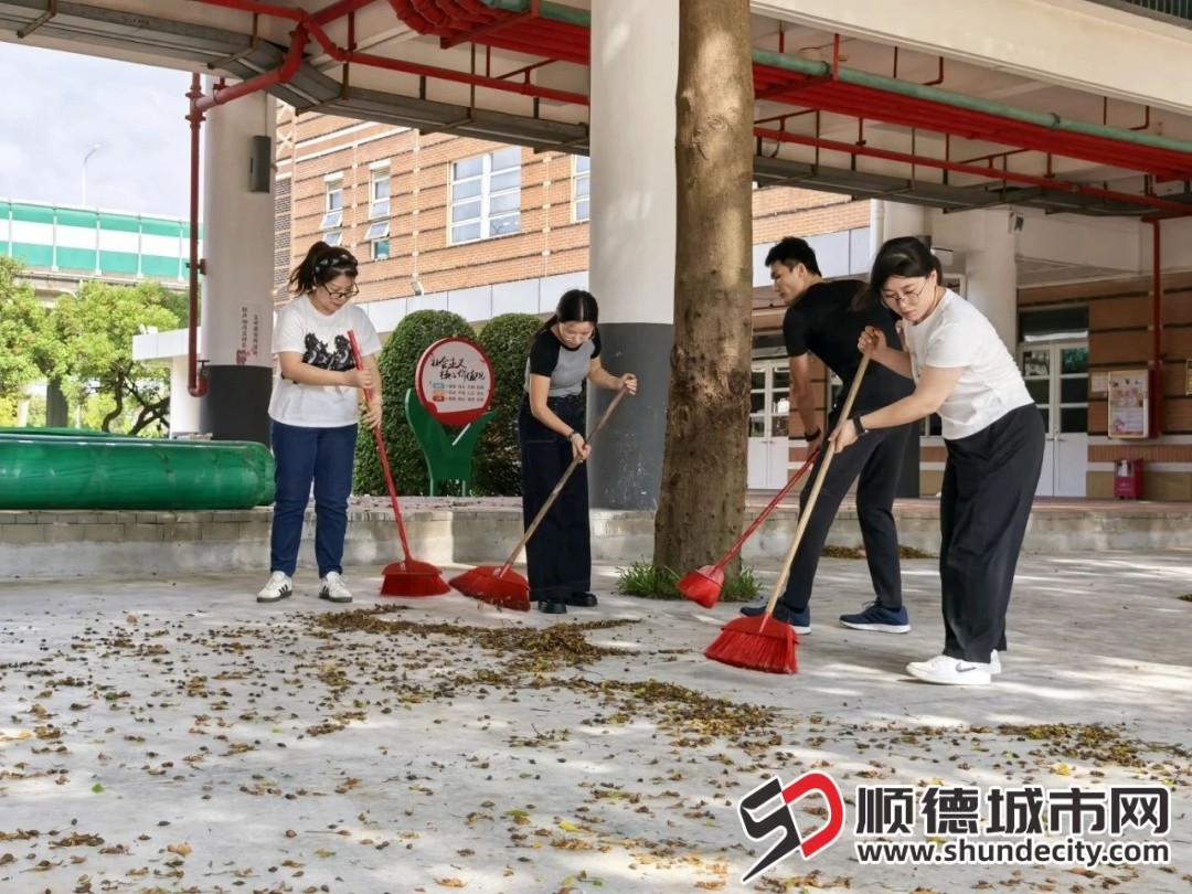 活动当天,校园各处都是忙碌的身影:有的手持扫帚清扫操场落叶,有的拿着水管冲洗校园空地,有的负责拿着垃圾袋装运落叶......参与者们各司其职又相互配合,展现出了极强的团队协作精神。教职工子女们也化身“小小卫生员”,在家长带领下整理杂物、擦拭宣传栏,稚嫩的身影里透着认真。在大家的共同努力下,原本就整洁的校园更添了几分清爽。他们用实际行动诠释了爱国卫生运动的意义,也为学生们树立了良好的榜样。