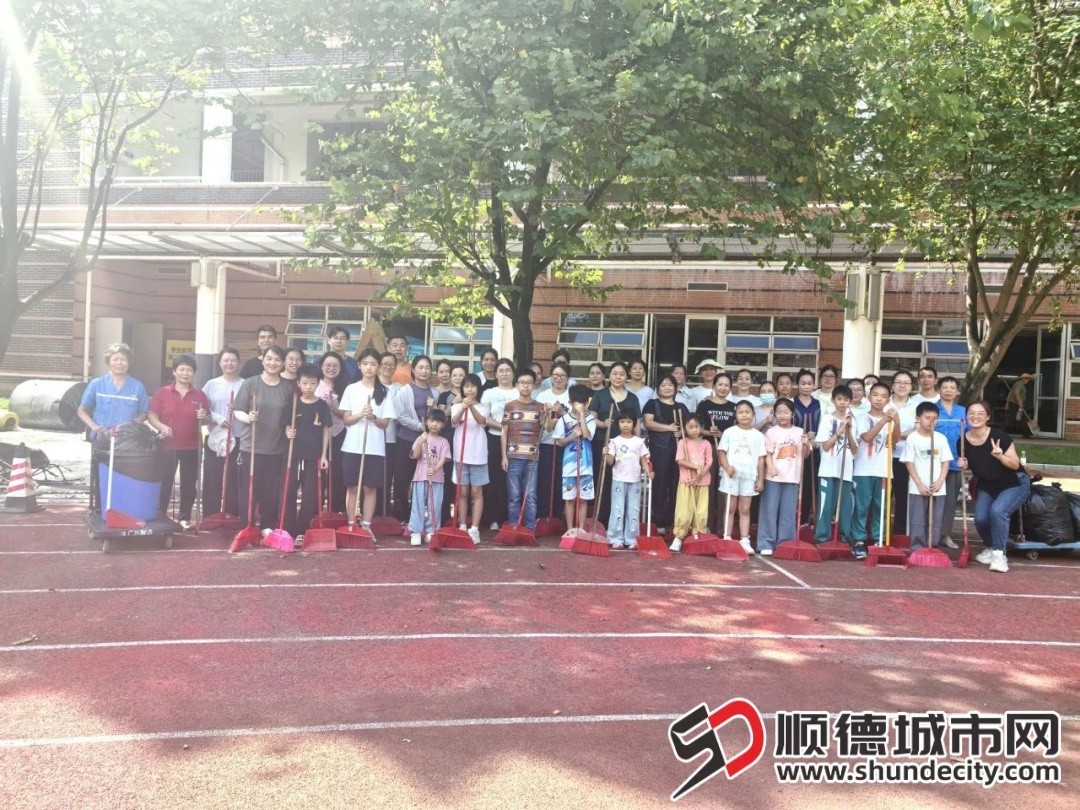 东实小全校教职工及部分教职工子女认真清扫校园,用行动践行爱国卫生理念。