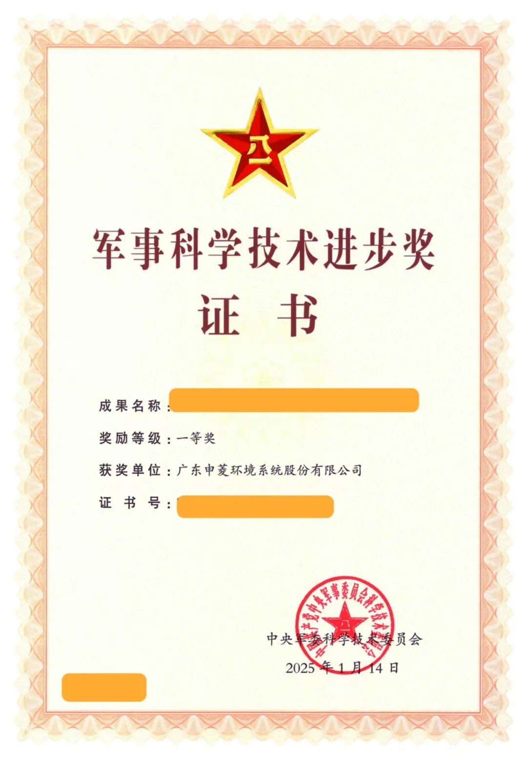 近日,位于顺德陈村的广东申菱环境系统股份有限公司凭借在特种环境控制领域的创新技术突破,荣获2025年度军事科学技术进步奖一等奖!