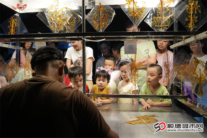 此外,手工艺圩同样人气爆棚。广绣、鱼灯、竹编、龙舟模型......顺德民艺圩大神集结!现场创作+文创售卖+手作体验,让市民游客沉浸式感受手艺的温度,七夕主题的手工饰品、传统工艺品、文创产品等都受到游客青睐。