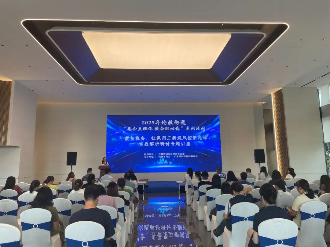 8月29日下午,由伦教街道经济发展办公室指导,伦教总商会与广东祥和税务师事务所有限公司联合主办的2025年伦教街道“惠企益晒你 暖企顺心意” 系列活动之“数智税务、社保用工新规风控新思维实战解析研讨专题讲座” 在伦教金福盛美学馆顺利举行,吸引了50位企业负责人、财务总监以及人力资源总监到场参与。