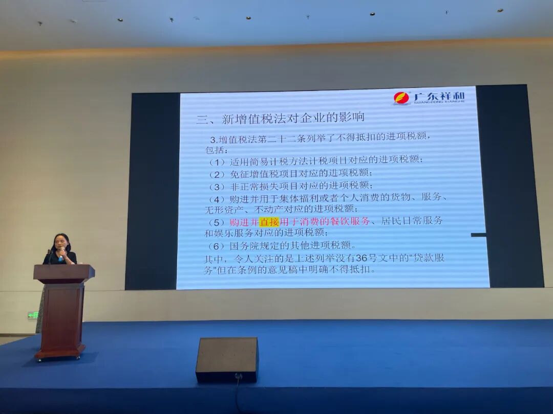 广东祥和税务师事务所副总经理谢月娥老师率先带来“数智税务下的企业税务风控” 主题分享。谢老师作为中国注册税务师、祥和财税俱乐部专家,拥有 10余年大中型企业财税审查与合规经验,曾为多家上市公司提供专项顾问服务。她围绕新增值税法对企业的影响、互联网平台企业涉税信息报送应关注事项以及做好税务风控的几点建议展开深入剖析,结合真实案例与政策趋势,为企业提供切实可行的税务风控思路。