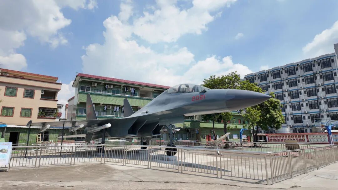 为了更好开展国防教育,让学生更加直观地了解我国军事科技发展,激发爱国热情和报国志向,此前,莘村中学引进一架1:1高仿真歼-16(代号“潜龙”)的模型机,此外,学校的军事模型基地还有“歼-20”“99A坦克”等多种模型。