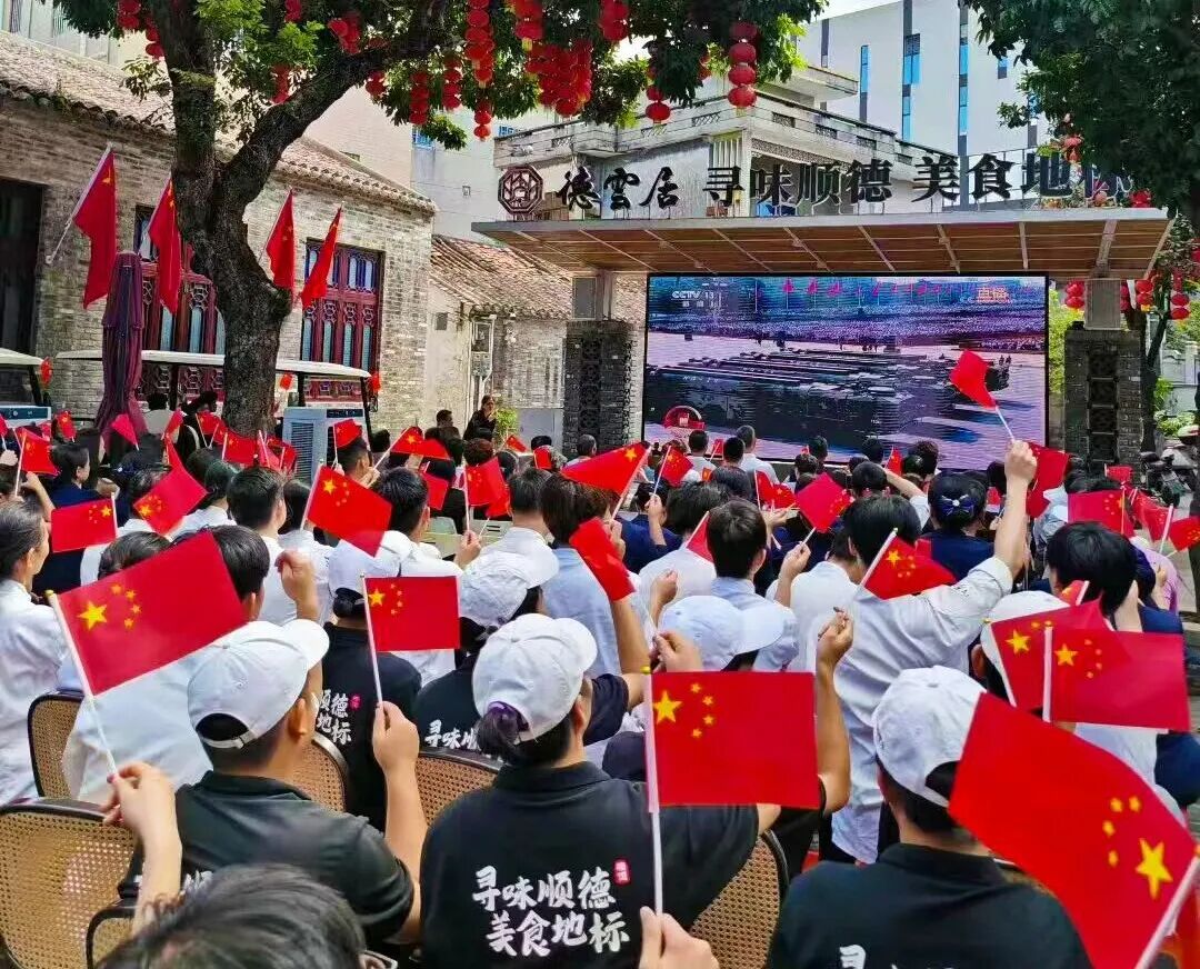 北滘镇政府各部门、企事业单位、村(社区)及学校等纷纷组织集中观看九三阅兵,共同见证具有重大政治意义和深远历史意义的一刻,深化国防教育意义,感受强国强军磅礴力量。