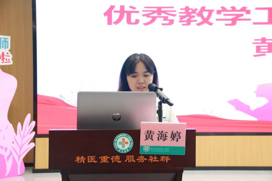 优秀教学工作者代表黄海婷在会上发言指出,作为带教老师,除了做到“放手不放眼”,还要做到刚柔并济,理解学生的犯错,巧妙地纠错,创造机会让学生多做临床基本操作,打好扎实的基础。