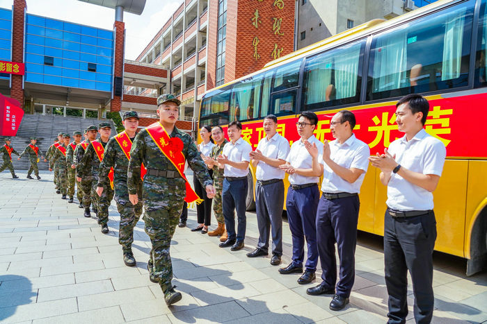 带着家乡的祝福与期盼,新兵们与家人一一拥抱道别,有序登上奔赴训练基地的大巴。车辆缓缓驶离,窗外是家人挥别的身影,车内是新兵们坚定的眼神——这一刻,他们正式踏上军旅新征程,即将用青春书写属于自己的“强军答卷”。